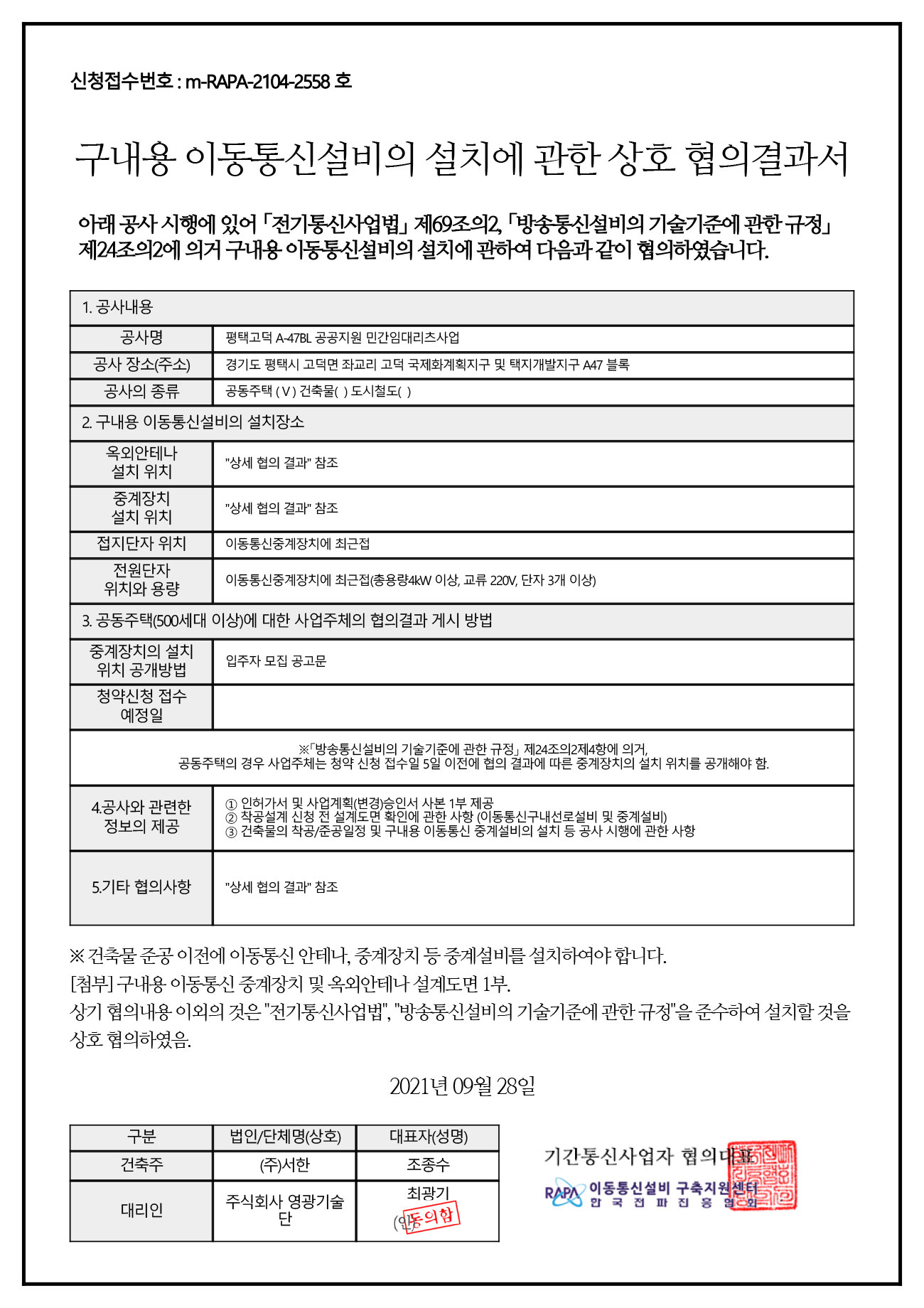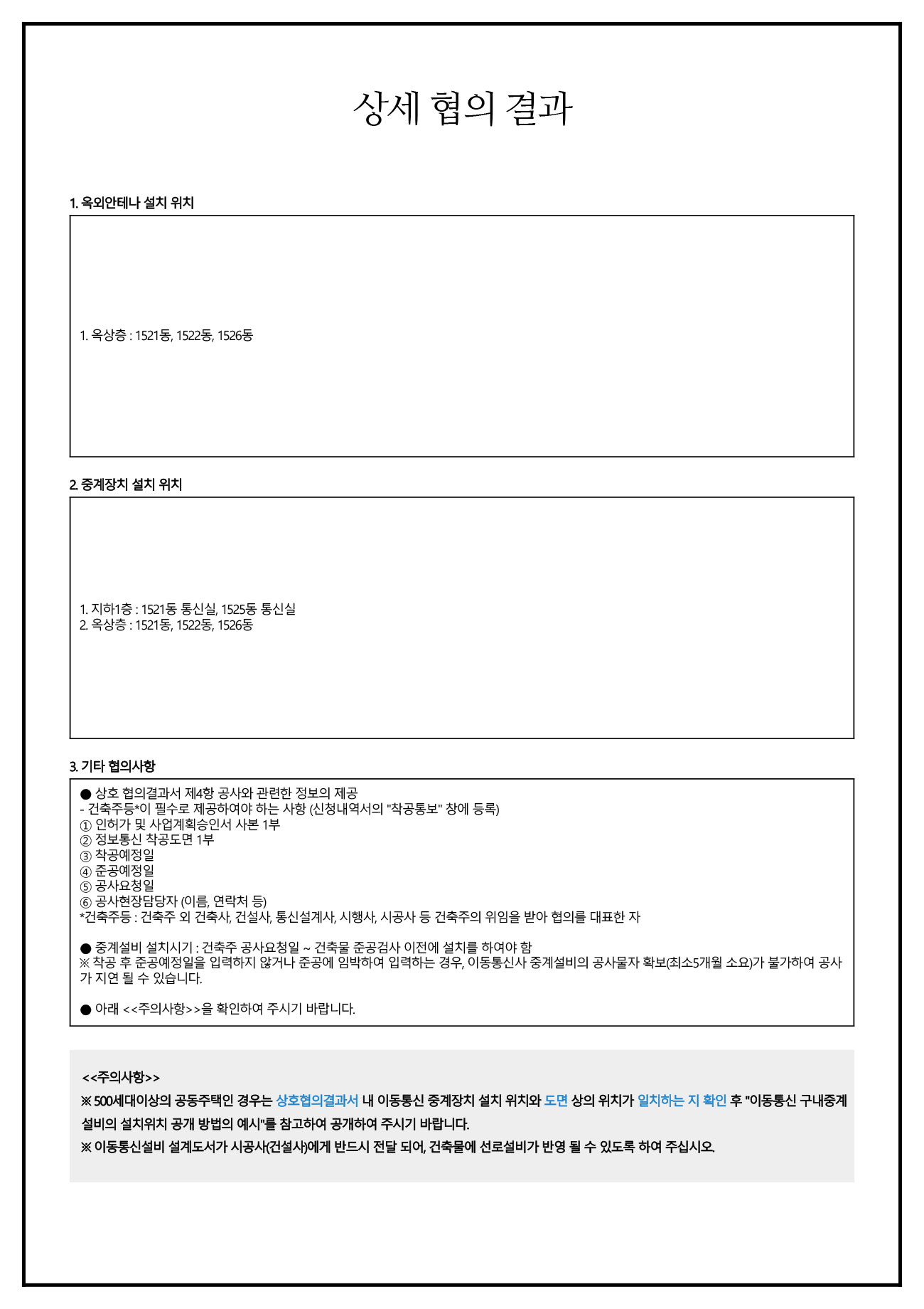 이동통신 설비설치 협의 결과서
