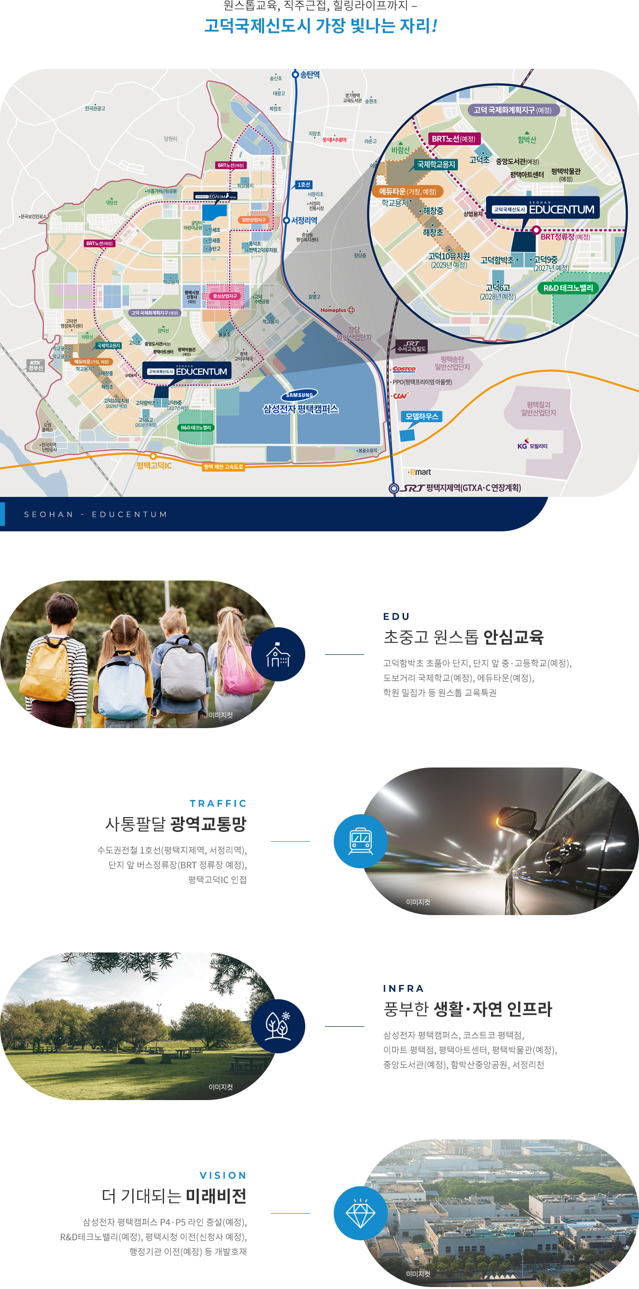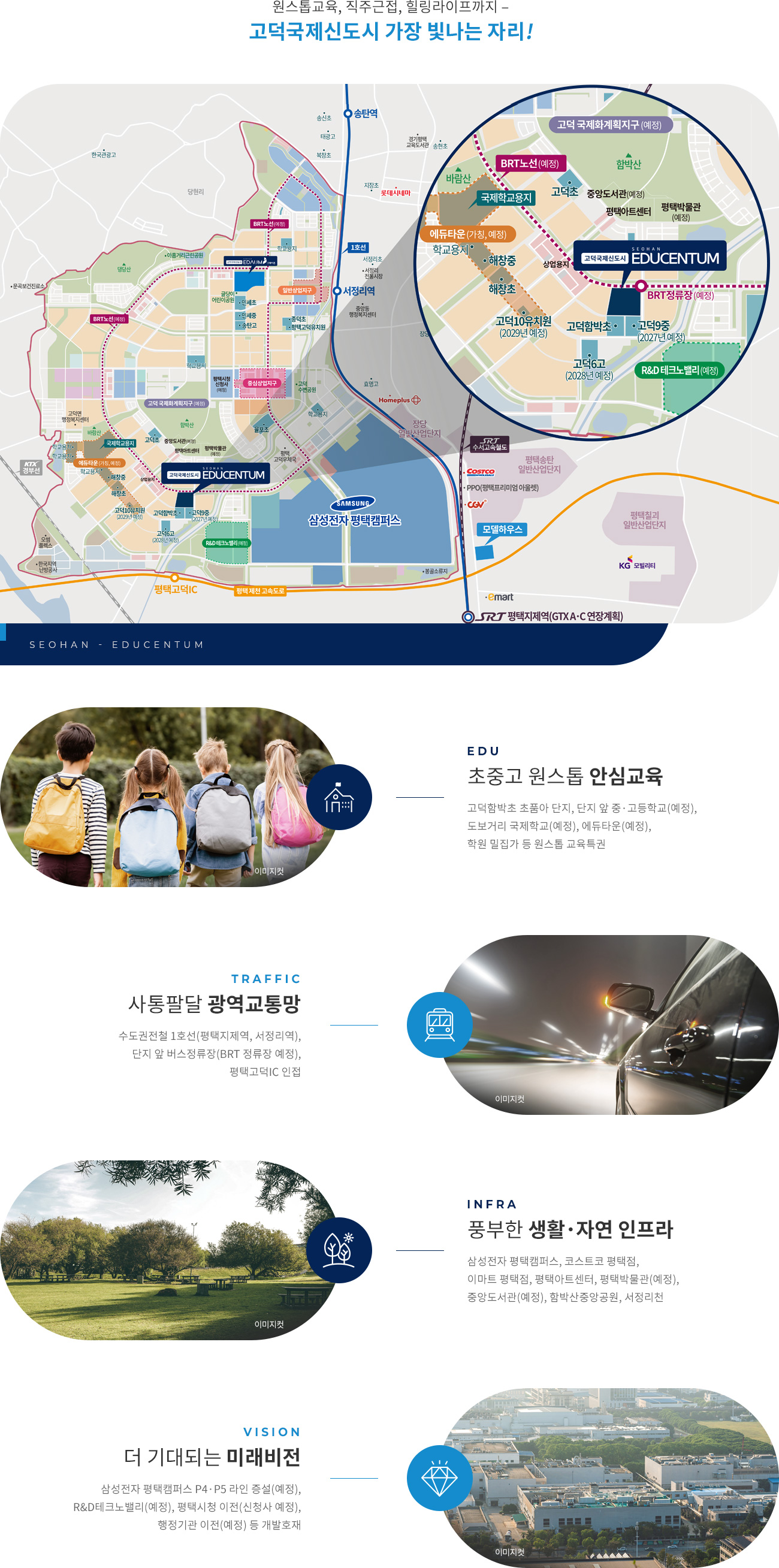 - 상기 표기된 학교는 단지 주변에 학교시설이 있음을 단순 안내한 것이며, 학교배정 및 신설은 해당 교육청 등 관계기관이 주관하는 것으로 당사와는 무관합니다.